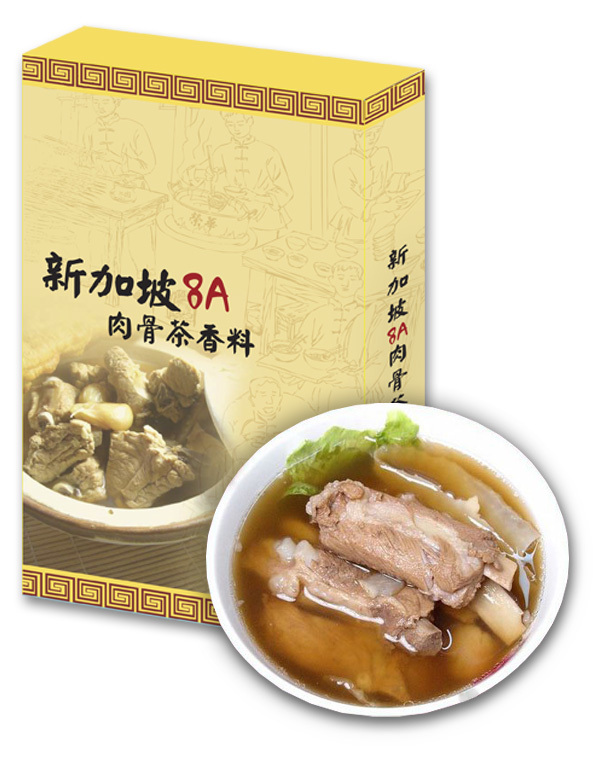 新加坡8A肉骨茶是以排骨加上當歸、黨蔘、甘草、枸杞子、白胡椒等藥材熬煮,具有生血、旺血、補氣等功能,美味又養生。